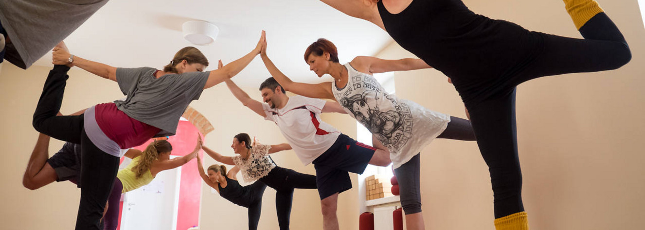 Hatha-Yoga mit einer Prise Vinyasa-Flow, dynamische Übungsfolgen und Zwischenentspannungen.
