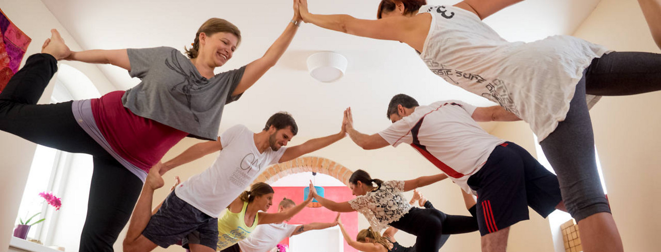 Hatha-Yoga mit einer Prise Vinyasa-Flow, dynamische Übungsfolgen und Zwischenentspannungen.